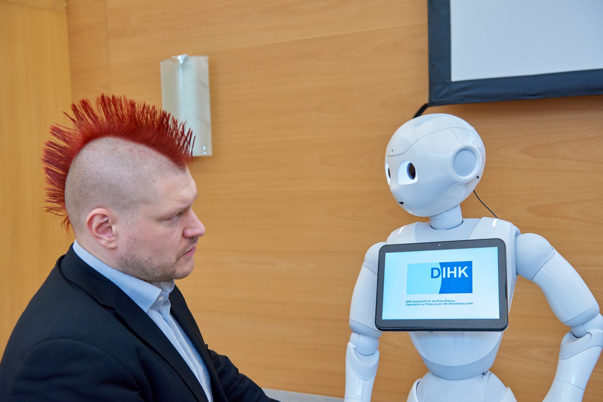Auch das ist „Neues Lernen“: Den 4. IHK-Fachkongress eröffnete kein Mensch, sondern ein Roboter. „Pepper“ sprach die einleitenden Worte, winkte ins Publikum – und war zwei Tage lang gern gesehenes Fotomotiv auf zahlreichen Selfies der Kongressteilnehmenden. Über 200 Personen aus der IHK-Welt, Bildungsinstitutionen und Unternehmen waren in die IHK-Akademie Westerham gekommen, um sich mit der Digitalisierung des Lernens und dem Lernen für die Digitalisierung zu befassen. Veranstalter waren die IHK Akademie München und Oberbayern und die DIHK-Bildungs GmbH, die zusammen mit Experten aus der Praxis Produkte und Dienstleistungen für die Bildungsarbeit der IHKs entwickelt. Dabei setzt sie zunehmend auf Digitalisierung.